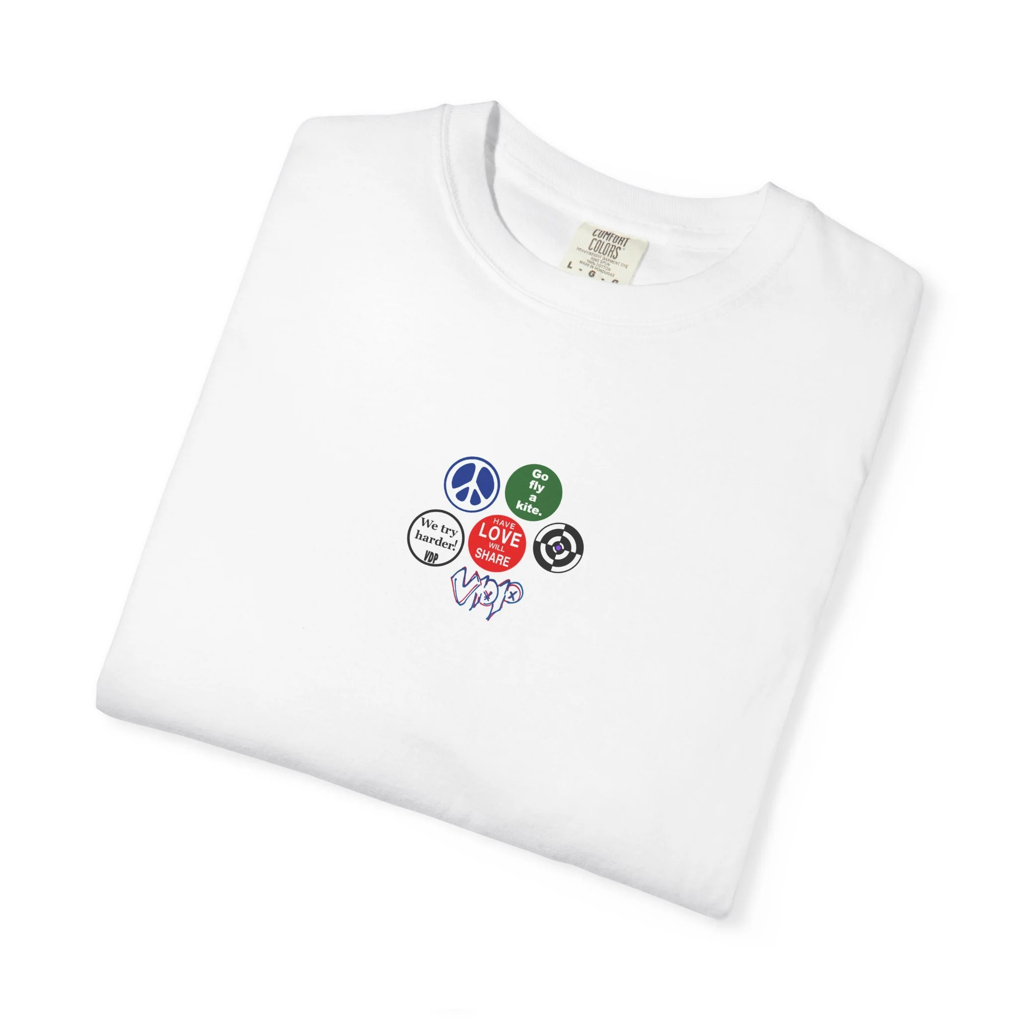 A soft, heavyweight tee that reads like a small, confident statement. The garment-dyed cotton has a lived-in hand and relaxed drape that sits comfortably over shoulders and layers easily under a jacket. The tiny chest graphic keeps the look minimal — a subtle detail for someone who prefers quiet, thoughtful style over loud logos. Wear it to slow coffee mornings, casual meetups, or weekend errands when you want comfort that still feels considered.